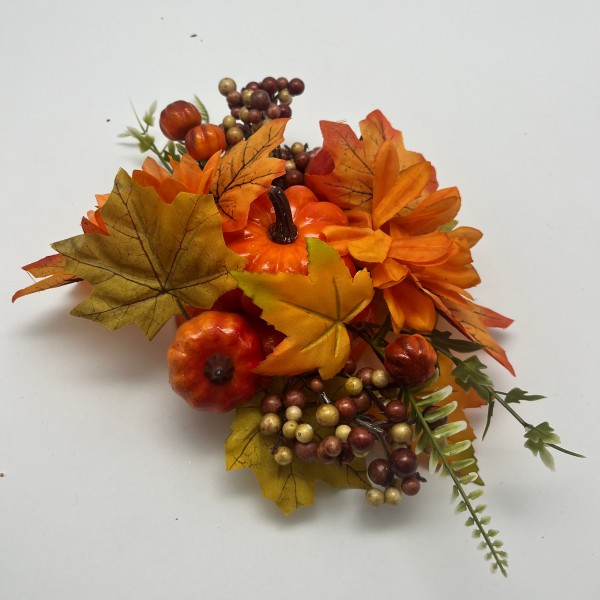 Bring the essence of autumn indoors with our exquisite harvest centerpiece. This centerpiece is a beautiful representation of the season, showcasing a collection of pumpkins, autumn leaves, and clusters of grapes. The warm colors and natural elements create a welcoming atmosphere, making it an ideal centerpiece for your dining table or mantelpiece during the fall months. Whether you're hosting a Thanksgiving dinner or simply want to add a seasonal touch to your home, this centerpiece is a lovely choice. Each piece is crafted with care to ensure a high-quality decoration that will enhance your autumnal celebrations.