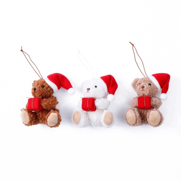Bring a sense of warmth and joy to your holiday decor with our set of three Christmas teddy bear ornaments. Each bear, in a unique color, is adorned with a Santa hat and holds a gift, symbolizing the spirit of giving. These ornaments are not only perfect for your Christmas tree but also make a lovely gift for friends and family. Add a touch of festive charm to your holiday celebrations with these charming teddy bears.
