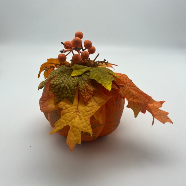 Embrace the spirit of autumn with our beautifully crafted pumpkin centerpiece. This centerpiece showcases a delightful combination of pumpkins, autumn leaves, and berries, all arranged to create a warm and inviting atmosphere. Ideal for enhancing your home decor during the fall season, it serves as a stunning centerpiece for your dining table or a charming accent for your mantelpiece. Celebrate Thanksgiving or any harvest festival with this rustic and elegant decoration that captures the essence of the season. Each piece is designed with attention to detail, ensuring a high-quality, durable decoration that will be a cherished part of your autumn festivities.