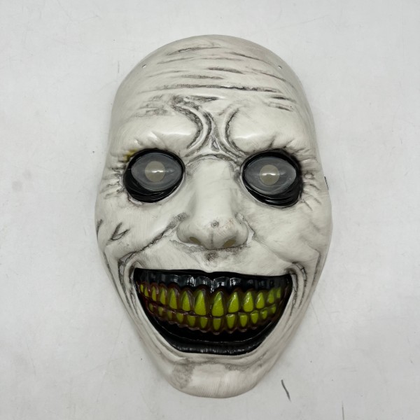 Stand out in the dark with our green Teeth Evil Grin Mask. This eerie mask features a tight, stretched white face with deep wrinkles, large empty eye sockets, and a wide, grinning mouth filled with green teeth that shine in low light. The lightweight, flexible material and adjustable strap ensure a comfortable fit, making it perfect for Halloween, horror cosplay, or nighttime haunted house events where you want to maximize the scare factor.
